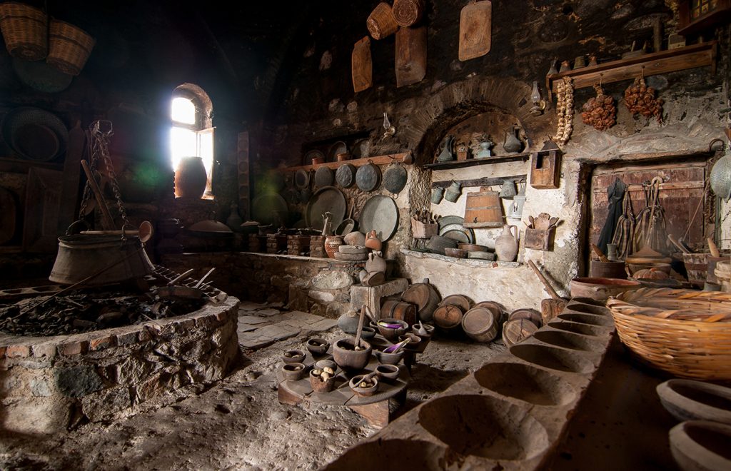 Die Küche wie wir sie heutzutage kennen, gibt es von der Grundidee schon eine ganze Weile. Während sie gegenwärtig mit den neusten Sachen ausgestattet ist, war sie im Mittelalter recht einfach gehalten, aber dennoch fester Bestandteil der Gesellschaft. Eine Feuerstelle im Lebensbereich, über der man kochen konnte, sorgte gleichzeitig für die Wärme in den Wohnräumen. Besonders beliebt war es einen Kessel über das offene Feuer zu hängen und Gerichte wie Eintöpfe, Breie oder auch Suppen zu kochen. Einen Rauchabzug gab es allerdings noch nicht und somit musste der entstandene Rauch durch die Türen oder Fenster abziehen.